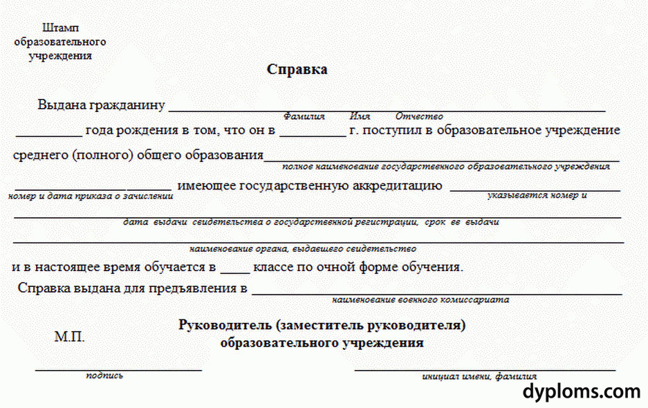 Тем не менее, выход есть! Достаточно купить справку для военкомата с регистрацией, обратившись к проверенному поставщику, где работают квалифицированные специалисты, обеспечивающие безупречное исполнение заказа. Такой подход избавит от ненужных трудностей. Например, одним из простых способов является оформление справки, удостоверяющей обучение на очной форме в вузе, что дает право на отсрочку на весь срок получения образования.